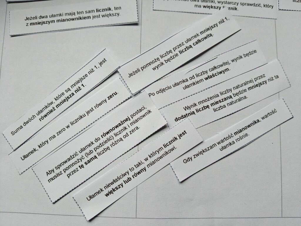 Aby skłonić uczniów do myślenia, stworzyłam zestaw 24 stwierdzeń dotyczących ułamków, które wymagają kategoryzacji na: