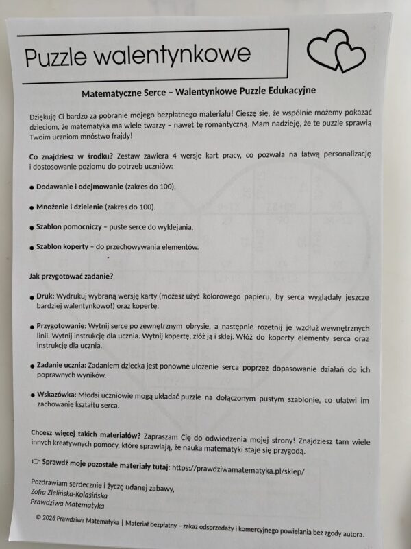 Matematyczne puzzle walentynkowe – co zawiera zestaw?